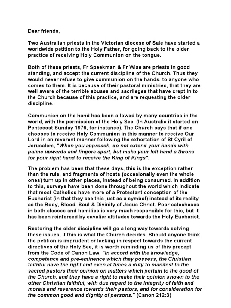 Petition To Stop Communion in The Hand PDF Catholic Church Canon Law